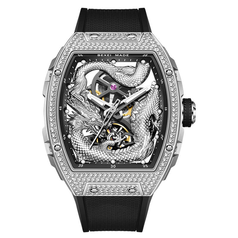 Mang biểu tượng thần thoại phương Đông vào thiết kế đẳng cấp, Bexei 9197G – phiên bản giới hạn “Thần Long” – là tuyệt phẩm đồng hồ cơ học dành cho những người yêu nghệ thuật và đam mê sưu tầm. Điểm nhấn nổi bật là hình tượng rồng 3D được chạm khắc tỉ mỉ ngay giữa mặt số, tạo nên một tác phẩm điêu khắc sống động và uy nghi, như đang cuộn mình bảo vệ bộ máy thời gian quý giá bên trong.
