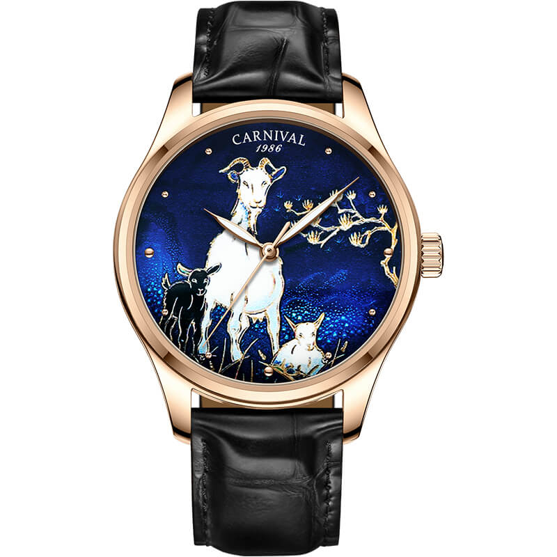 Cùng với đó, hình ảnh gắn kết của 3 con dê trên chiếc đồng hồ Carnival Tam Dương Khai Thái còn biểu tượng cho hạnh phúc bền chặt, gia đình sung túc, đủ đầy.