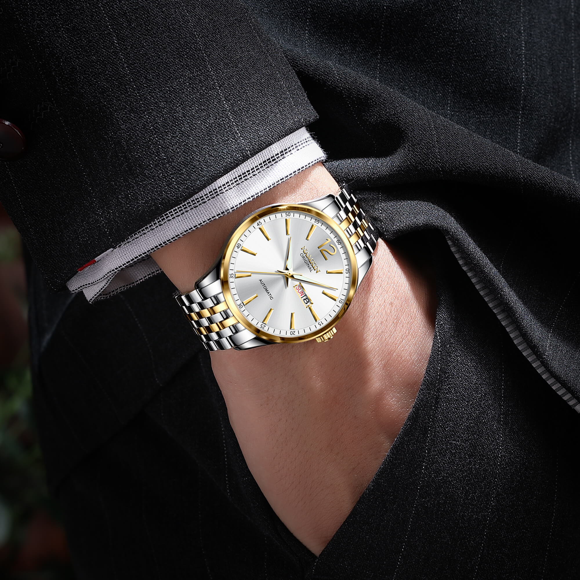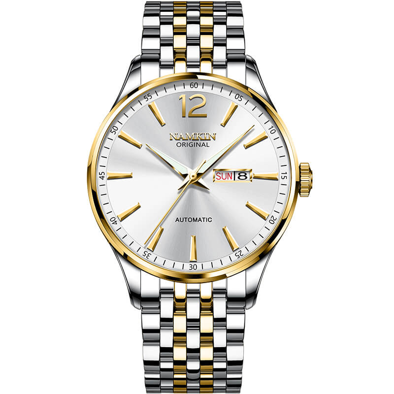 Namkin NK8882-1 - Thu hút từ thiết kế, chất lượng đến cả giá thành Hoàn thiện từ 2 gam màu được cánh mày râu yêu thích nhất: Vàng - Bạc, Namkin NK8882-1 dễ dàng chiếm được cảm tình người dùng ngay từ cái nhìn đầu tiên. Thêm vào đó, sản phẩm còn đem đến sự an tâm tuyệt đối nhờ vào cỗ máy Nhật Bản chính hãng.Một số điểm cộng đắt giá trên mẫu đồng hồ Namkin NK8882-1 được nam giới đánh giá cao: